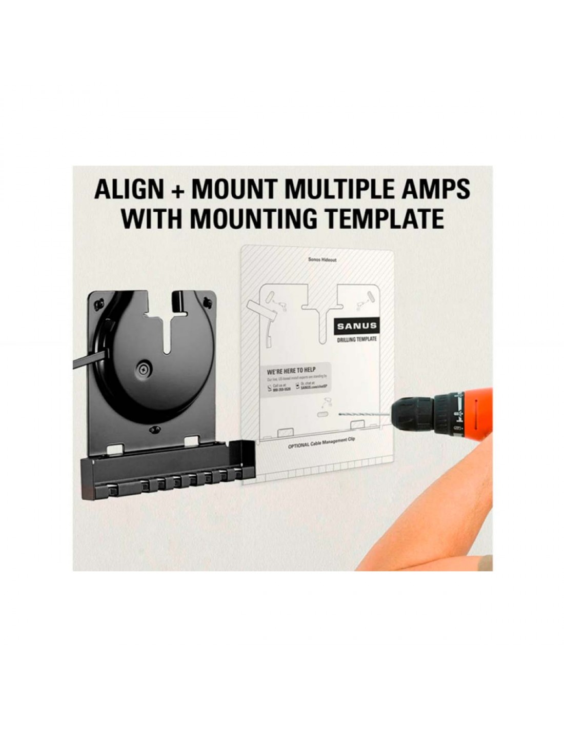 Stand designed to securely and elegantly mount Sonos amplifiers on the wall. It provides a stable and discreet installation, optimising space while keeping the equipment easily accessible.