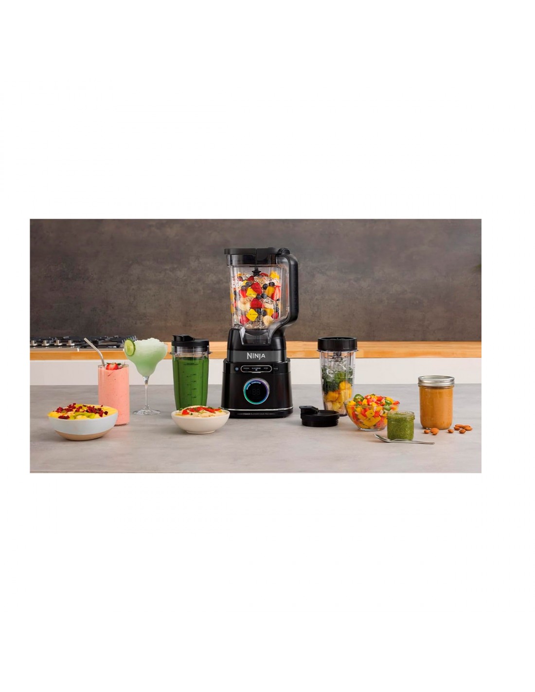 It offers intelligent control by automatically adjusting the speed, time and power according to the ingredients. It combines two functions in one, allowing it to be used as a full-size jug blender or as a personal blender for single servings. It features more than 15 functions, automatic and manual modes, preset programmes, a timer and a notification to add liquid. It includes a 1200W motor base, a jug with lid, two single-serve cups and various blade types, all in a compact design.
