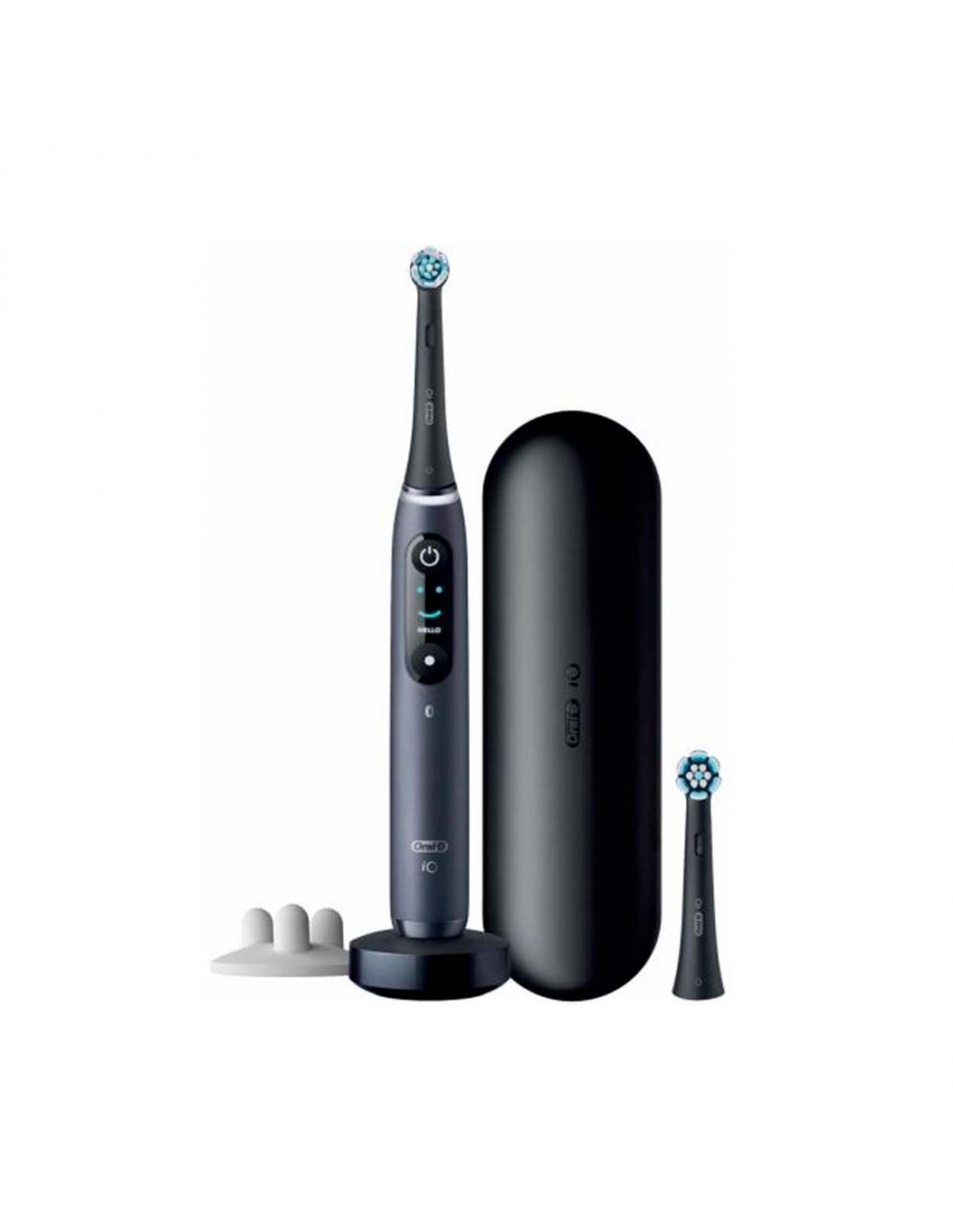 The interactive colour display indicates important information and allows you to select from 6 brushing modes. iO combines Oral-B's unique round brush head with the gentle cleaning energy of micro-vibrating filaments. Gum protection. Intelligent pressure sensor shows a red light when too much pressure is applied and green when the pressure is just right. The magnetic charger guarantees a full charge in about 3 hours.
