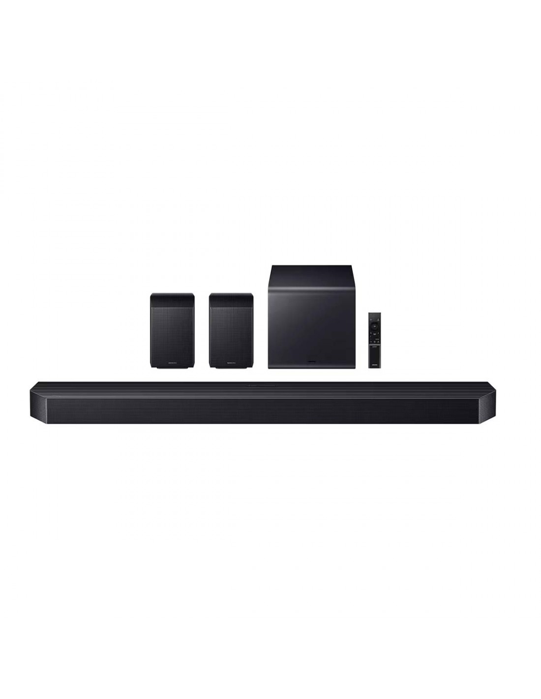 The Samsung 2025 HW-Q990F soundbar delivers an immersive and enveloping audio experience with its 11.1.4-channel system and 23 speakers, reaching a total power output of 756W. Compatible with Dolby Atmos and DTS:X, it provides high-quality, three-dimensional sound, enhanced by an 8" wireless subwoofer (300W) that produces deep, powerful bass. With Bluetooth 5.3, Wi-Fi, HDMI e-ARC, and AirPlay 2 connectivity, it integrates seamlessly with other devices. Features such as Q-Symphony, which synchronises the sound with Samsung televisions, further enhance the listening experience.