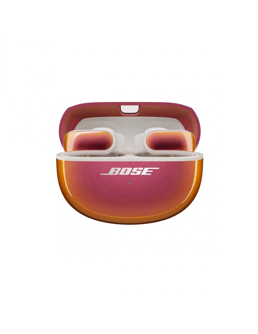 The Bose ULTRA OPEN Earbuds Sunset Iridescent are wireless earbuds with an open design, designed to provide an immersive sound experience without isolating you from your surroundings. Their Sunset Iridescent finish adds a modern and sophisticated touch, featuring warm, metallic tones that change with the light. They feature Bose’s renowned sound technology, delivering balanced and powerful audio, and a comfortable, secure fit, ideal for extended use during commuting, work, or daily activities, with a reliable Bluetooth connection.